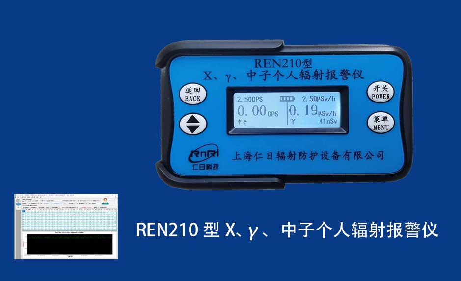 REN210 個人劑量報警儀REN210型X、γ、中子個人輻射報警儀內(nèi)置SiPM和鋰玻璃晶體組成中子探測器儀器,采用反照率方式探測中子射線,同時也能探測X、γ射線。因此它可同事監(jiān)檢測X、γ、中子三種射線。能顯示工作場所的劑量當(dāng)量率和累積劑量,更換電池時,日期及累積數(shù)據(jù)能永久保存。可選配RenRiPersonal個人劑量管理軟件,該軟件可存儲多個人的歷史數(shù)據(jù),能記錄日累積、月累積、年累積、輻照時長、計算平均劑量率、扣除或不扣除本底輻射,且以文字和圖譜的方式展現(xiàn)數(shù)據(jù)。廣泛應(yīng)用于環(huán)保、化工、水泥、煤礦、土木工程、石油、醫(yī)院、疾控、進出口商檢、核電、加速器、機場、中子源庫和其他安檢、邊境控制海關(guān)檢測等